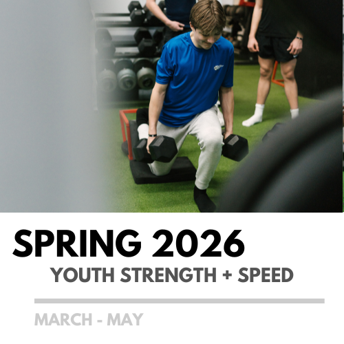 Strength Training: The focus within the strength training phase is learning proper form on a variety of exercises. Athletes will be coached on the basics of lifting starting at higher rep ranges to create proper movement patterns in a safe manner. Proper form takes precedence over weight. Once an athlete fully understands the movement, they will then slowly be loaded with heavier weights to shape their strength foundation. Strength training exercises are always changing from season to season. Examples of strength training exercises include but are not limited to: squat variations, deadlifts, lunge variations, rowing/pulling movements, pressing movements, and core exercises.